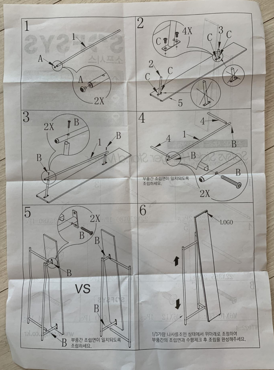 아래는 조립 설명서인데, 사진을 찍어서 블로그에 올리고 설명서는 버릴 예정이다.