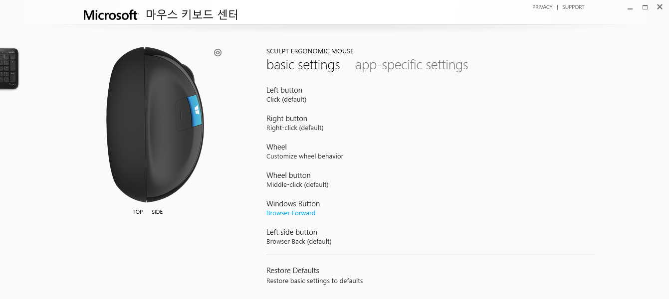 마이크로소프트 마우스&키보드 앱은 아래의 주소에서 다운로드 받으면 된다.