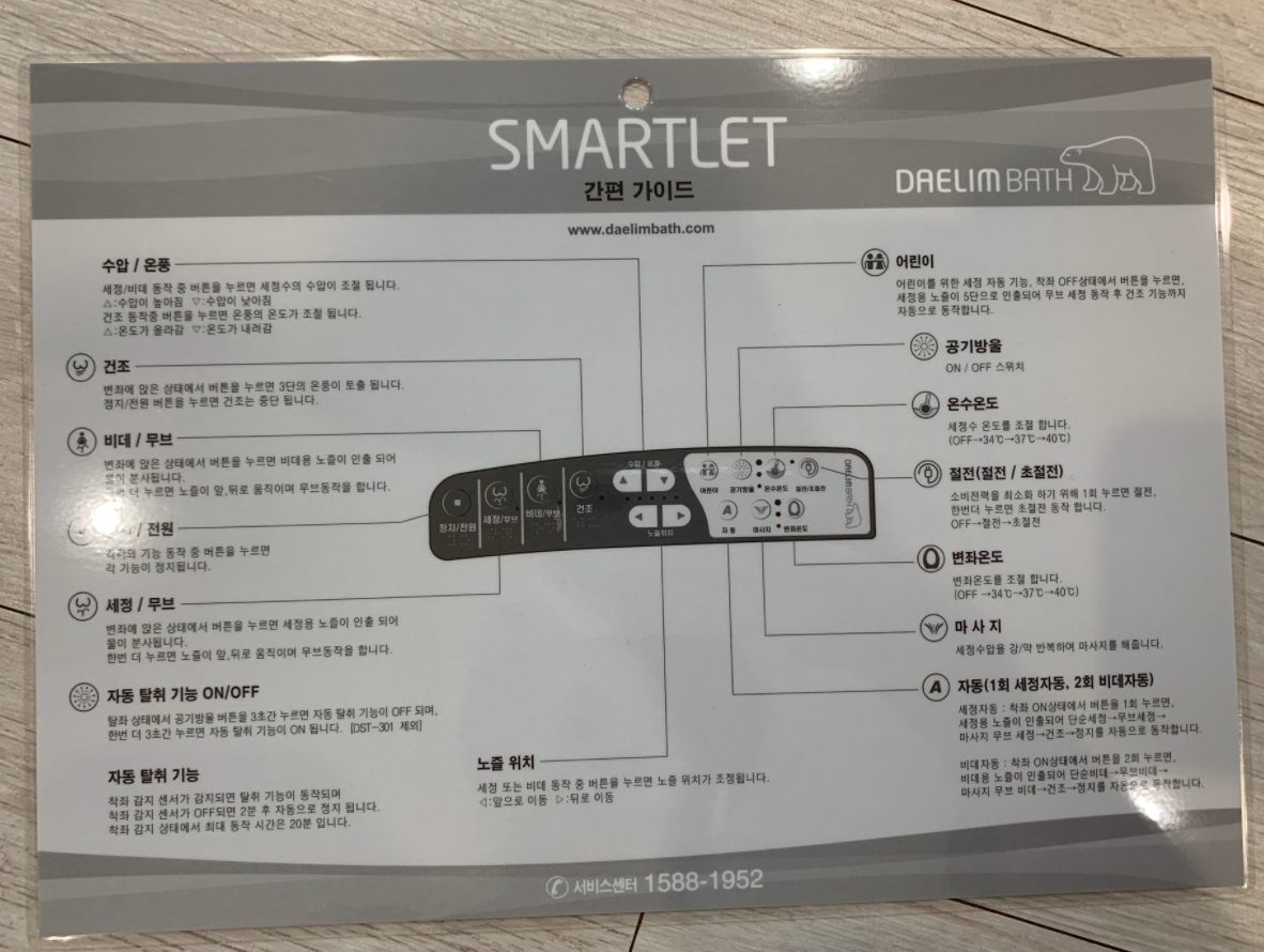 그래서 제조사인 대림바스의 홈페이지를 검색해보았더니, 일체형 비데(양변기와 비데가 일체형으로 나온 제품)를 제외하면, 유일하게 사각형 모양의 비데가 있었다. 모델명은 "대림바스 스마트렛 사각 전자식비데 DST-400".