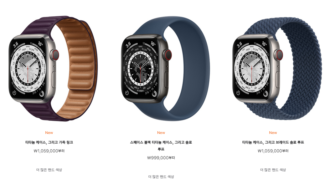 | 티타늄(Cellular) | 999,000 | 1,059,000 | 티타늄, 스페이스 블랙 | 애플워치 에디션 |