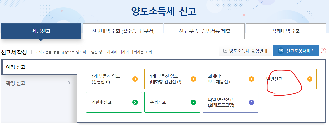 3. 일반신고 클릭(기한 내 신고일 경우)
