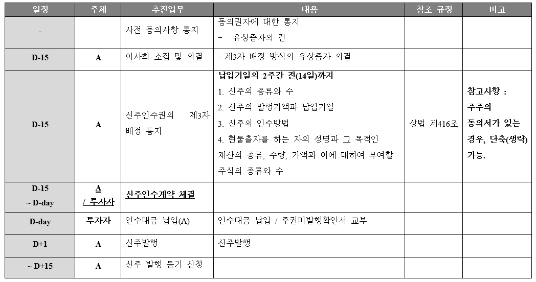 비상장회사 제3자 배정 유상증자 일정표(예시)
