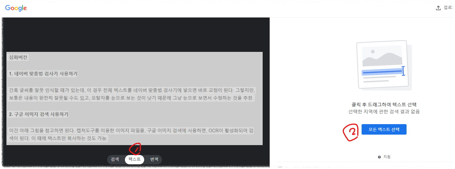 이건 아래 그림을 참고하면 된다. 캡처도구를 이용한 이미지 파일을 구글 이미지 검색에 사용하면, OCR이 활성화되어 검색이 된다. 이 때에 텍스트만 복사하는 것도 가능.